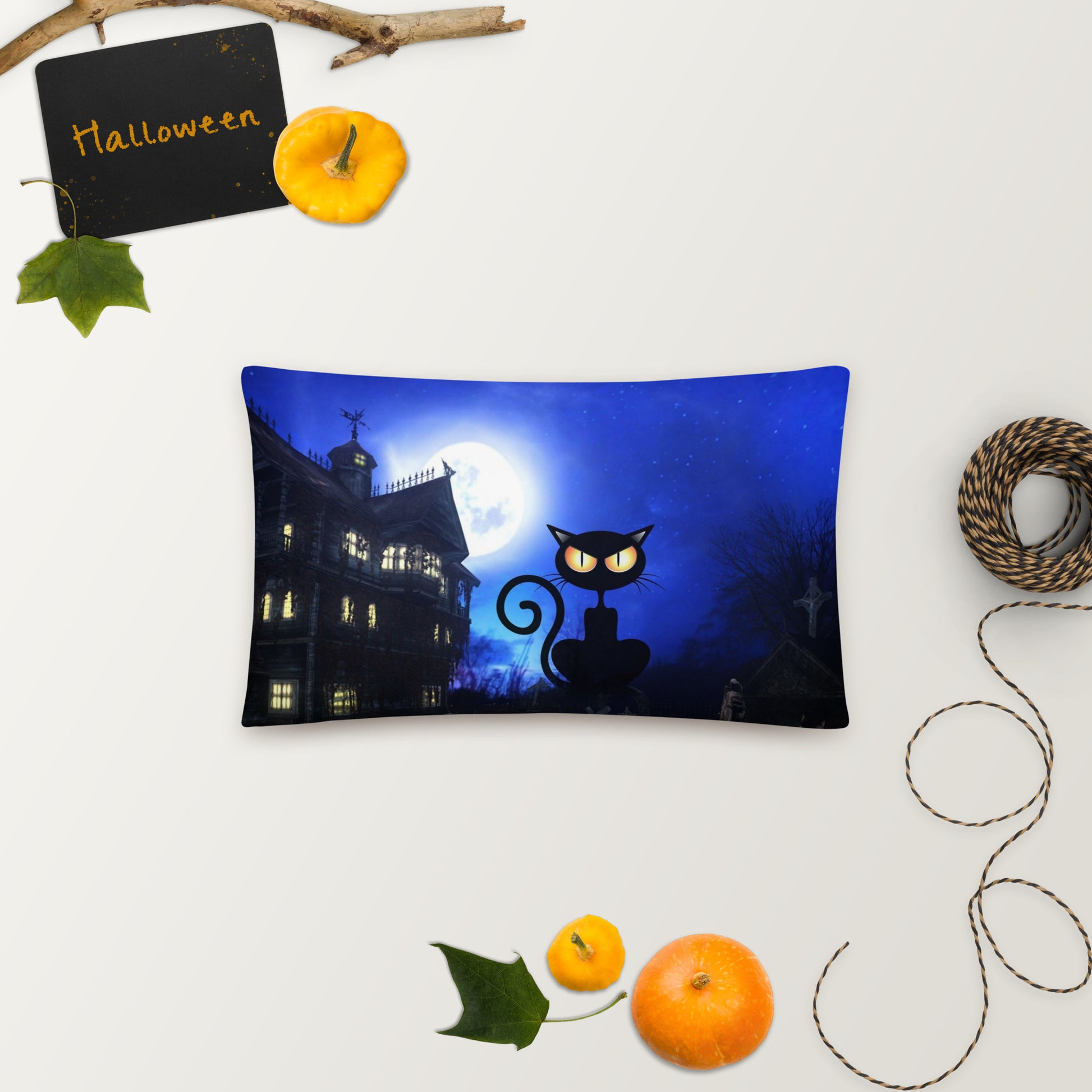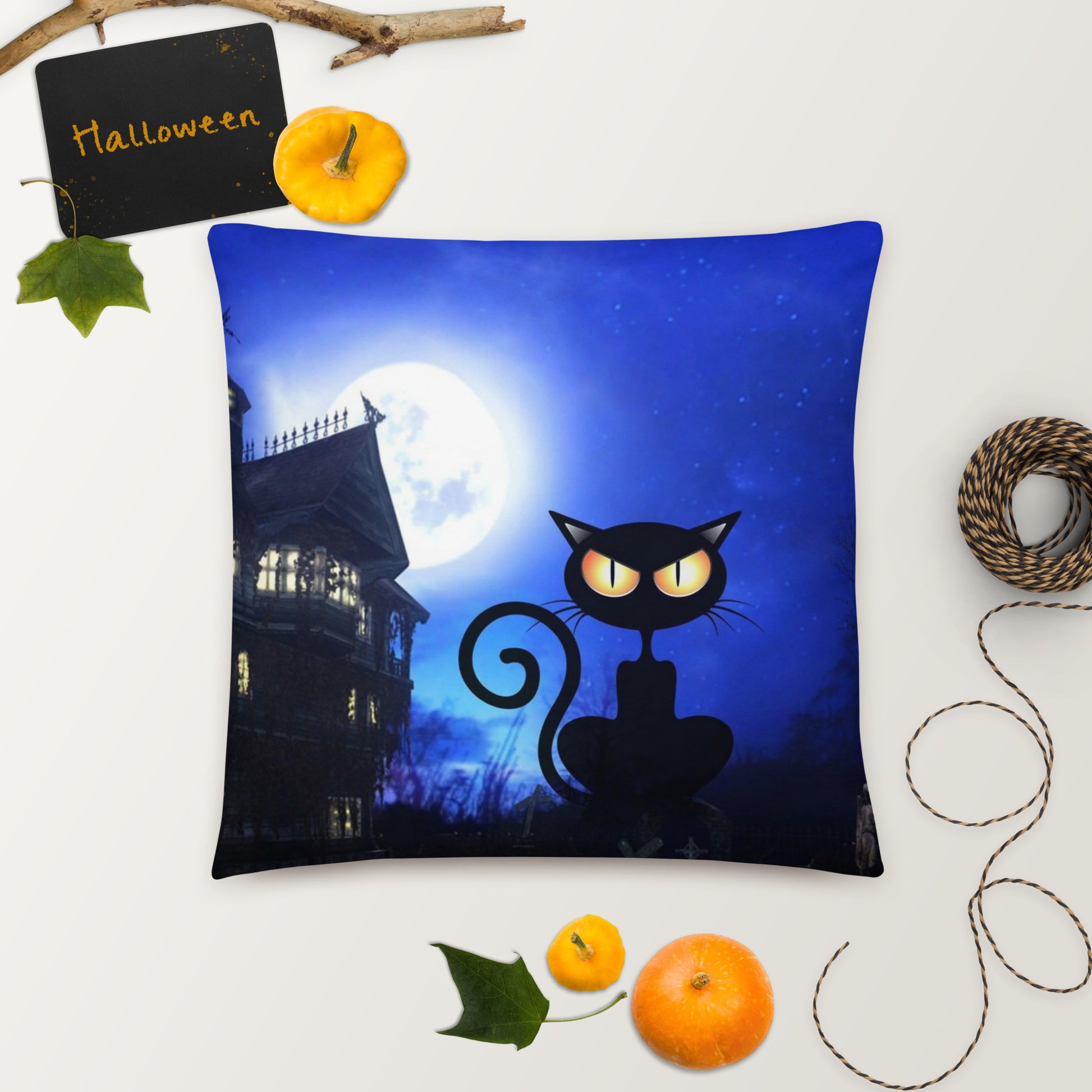 Cat and the Haunted House Basic Pillow