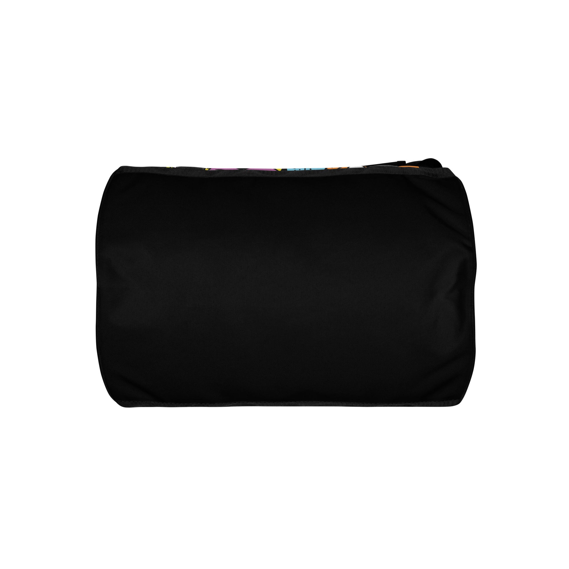 Ready to get your fitness on? Add some punch to pumping iron with this all-over print gym bag. Made from 100% polyester and sturdy, water-resistant fabric, this bag is fun meets function. And it’s got pockets!