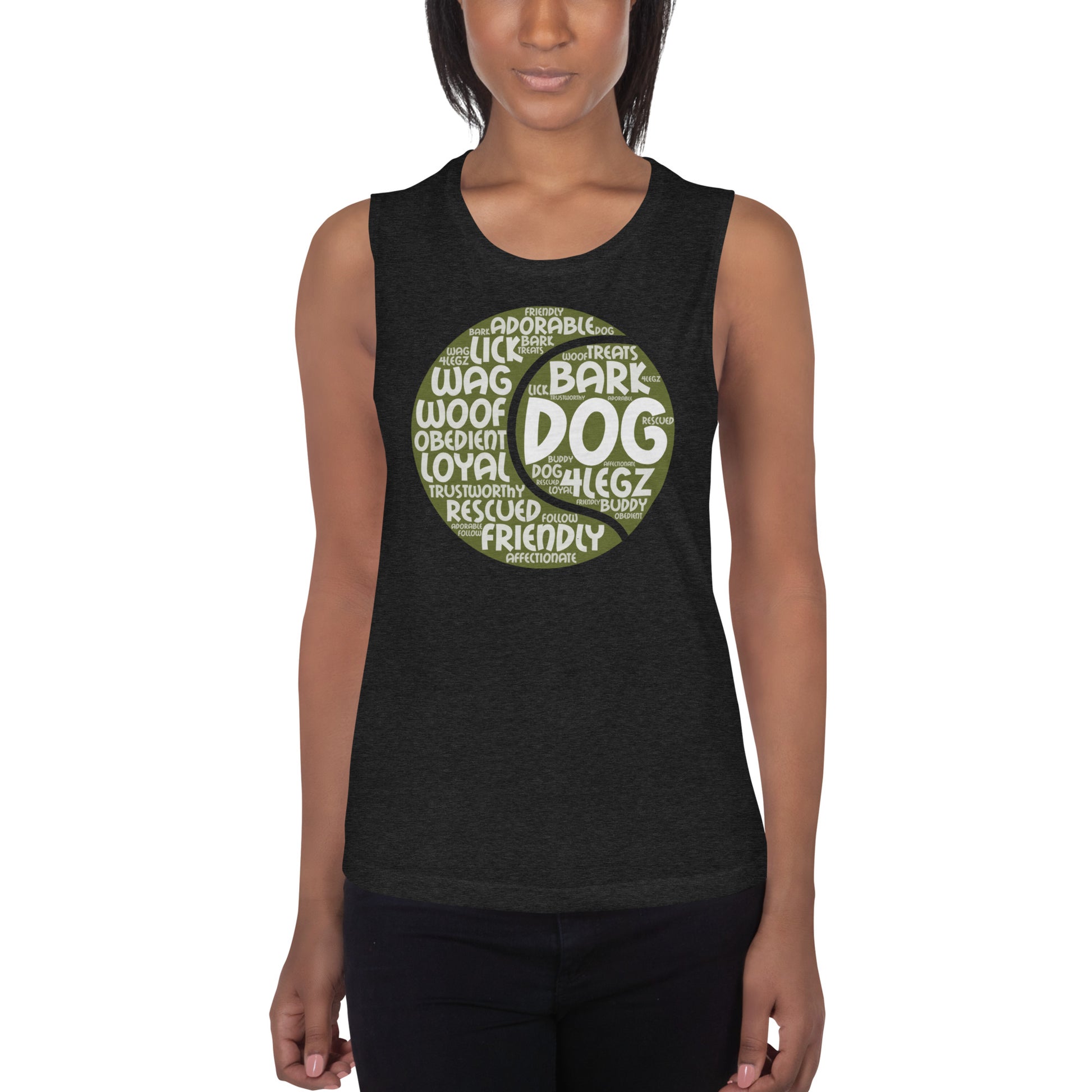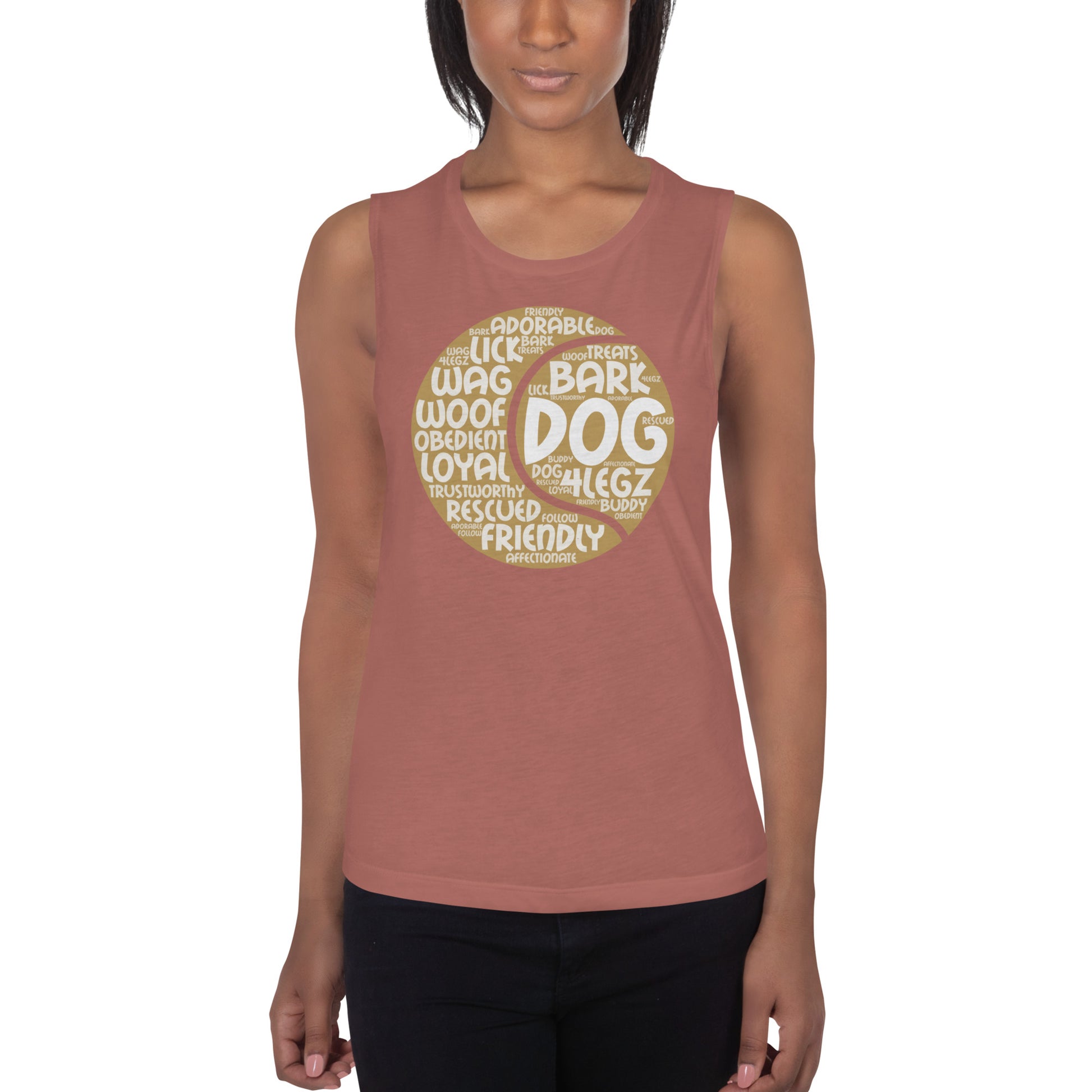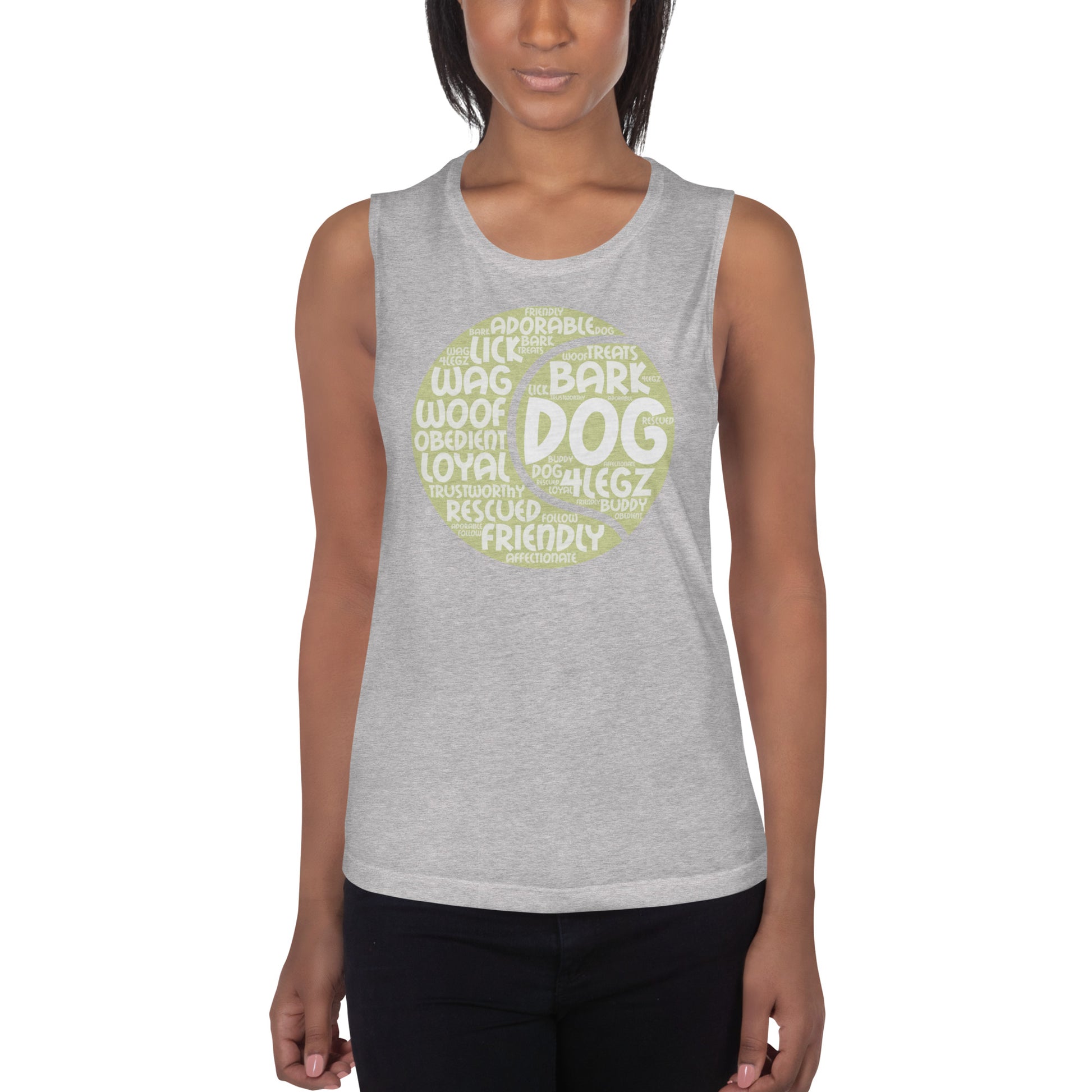 Dog Tennis Ball Words Ladies’ Muscle Tank