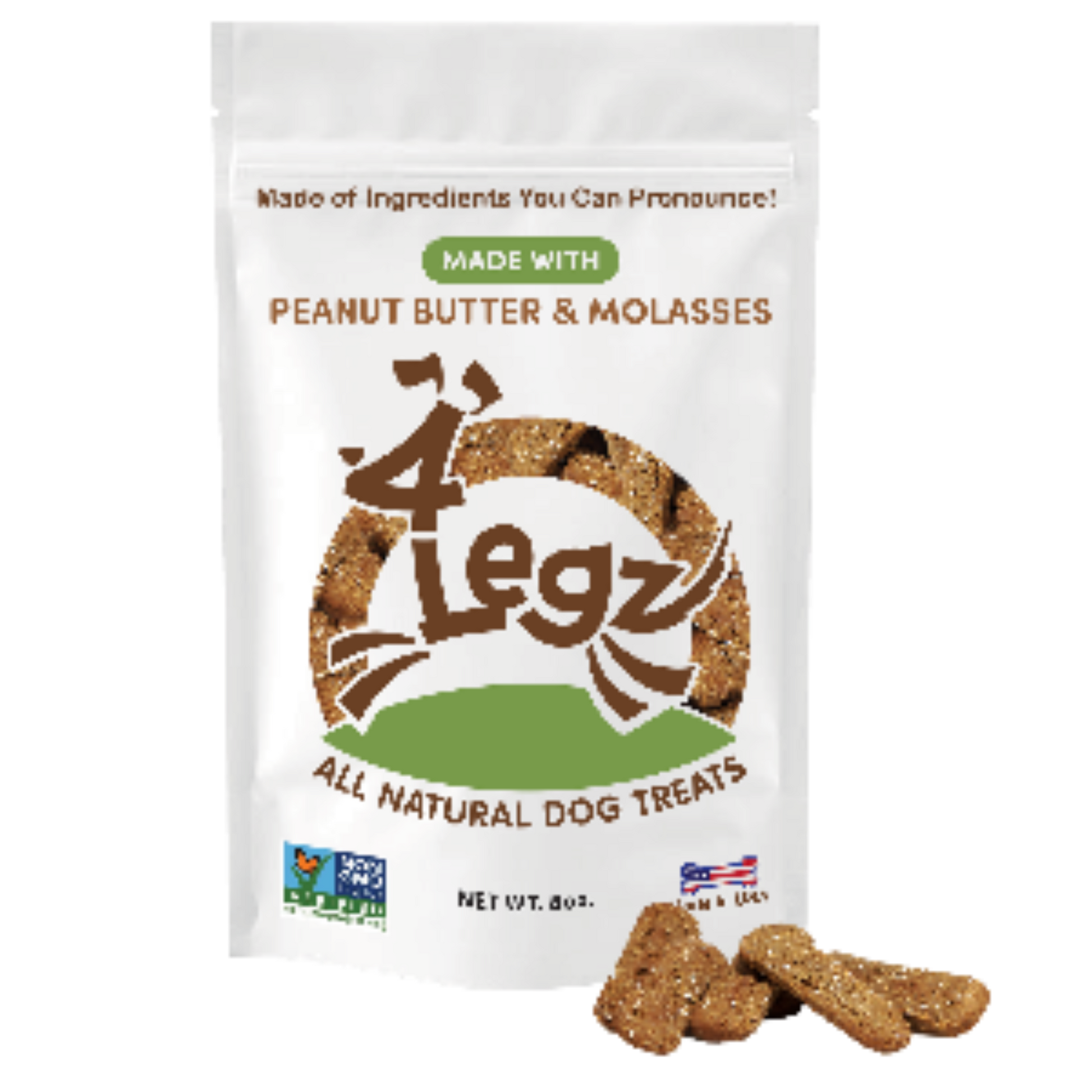 Unsulfured blackstrap molasses, organic unsalted peanut butter, organic rye flour, oat flour, rolled oats, cold-pressed canola oil, and ground cinnamon. Guarantee Analysis: Crude Protein (min) 9 % Crude Fat (min) 6 % Crude Fiber (max) 3 % Moisture (max) 11 % Calories Content (Calculates) Metabolize Energy 3910 kcal/kg Metabolize Energy 30 kcals/treat NET WT. 8 OZ.